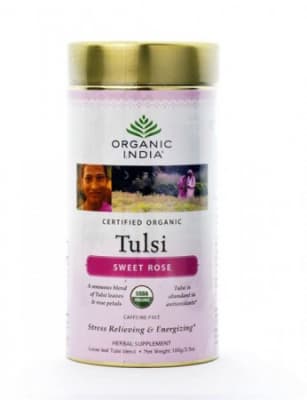 Базиликовый чай «Тулси» с лепестками розы избавляет от стресса, обладает экзотическим ароматом. • Способствует укреплению иммунитета. • Не содержит кофеин. • Поднимает настроение. • Избавляет от стресса. • Без глютена и ГМО. Состав (основные ингредиенты): лепестки розы, тулси (базилик священный), ромашка, стевия, мирт.