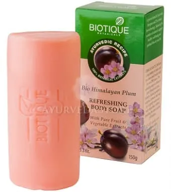Состав: гималайская слива 2.0%, мыльный орех 1.5%, барбарис индийский 1.0%, амла 1.5%, мелия 0.2%, куркума длинная 0.1%, парфюмерная композиция 1.5%, краситель 0.01%, BHT 0.01%, мыльная основа 84.0%, очищенная вода. Органически чистый продукт, без консервантов.