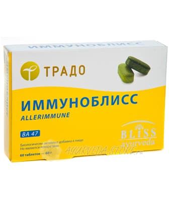 Формула Иммуноблисса составлена таким образом, что по древним аюрведическим канонам оптимизирует и улучшает работу вилочковой железы (тимуса) – главного органа иммунной системы человека. В отличие от современных иммуномодуляторов, которые улучшают функции только отдельных клеток иммунной системы, формула Иммуноблисса работает с главной управляющей железой - тимусом. Именно функция тимуса оказывает на иммунитет всестороннее, полноценное регулирующее действие. Только от тимуса будет зависеть правильная работа иммунной системы в целом при любых неблагоприятных воздействиях на неё. Симптомы нарушения иммунитета не всегда бывают явными – к ним относятся не только частые простудные заболевания, но и аллергии, аутоиммунные поражения (например, аутоиммунный тиреоидит), ревматоидный артрит, псориаз, хронические очаги инфекции, нейродермиты, ВИЧ, синдром хронической усталости и т.д.