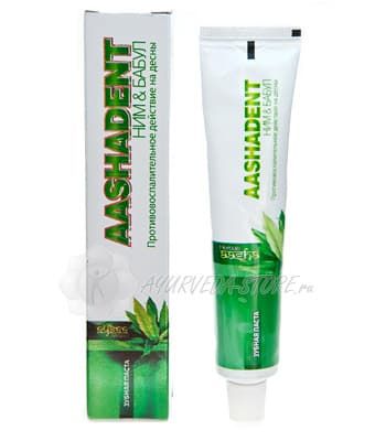 Зубная паста Ним и Бабул — Благодаря выраженному вяжущему действию, акация бабул предотвращает и устраняет кровоточивость десен, заживляет мягкие ткани и быстро залечивает ранки и язвы. Улучшает состояние слизистой оболочки рта. Укрепляет десны и предупреждает пародонтит. Ним, мощный антисептик, создает непревзойденный антибактериальный эффект, подавляя рост патогенных микроорганизмов и препятствуя развитию инфекционных заболеваний. Надежно защищает от образования налета в течение дня, купируя воспалительные и кариозные процессы. Мята устраняет неприятный запах изо рта и надолго сохраняет свежесть дыхания.